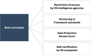 The Data Privacy Framework agreement has been in force since July 2023. Following Safe Harbor and the EU-US Privacy Shield, this is now the third attempt to establish a legally secure agreement for the transfer of personal data from the EU to the US. In the following article, we clarify the following questions in particular: What basic principles are laid down in the new data protection agreement? Does the new agreement have what it takes to withstand the counterclaims that are already planned? And how did a third data protection agreement between the EU and the US come about in the first place?